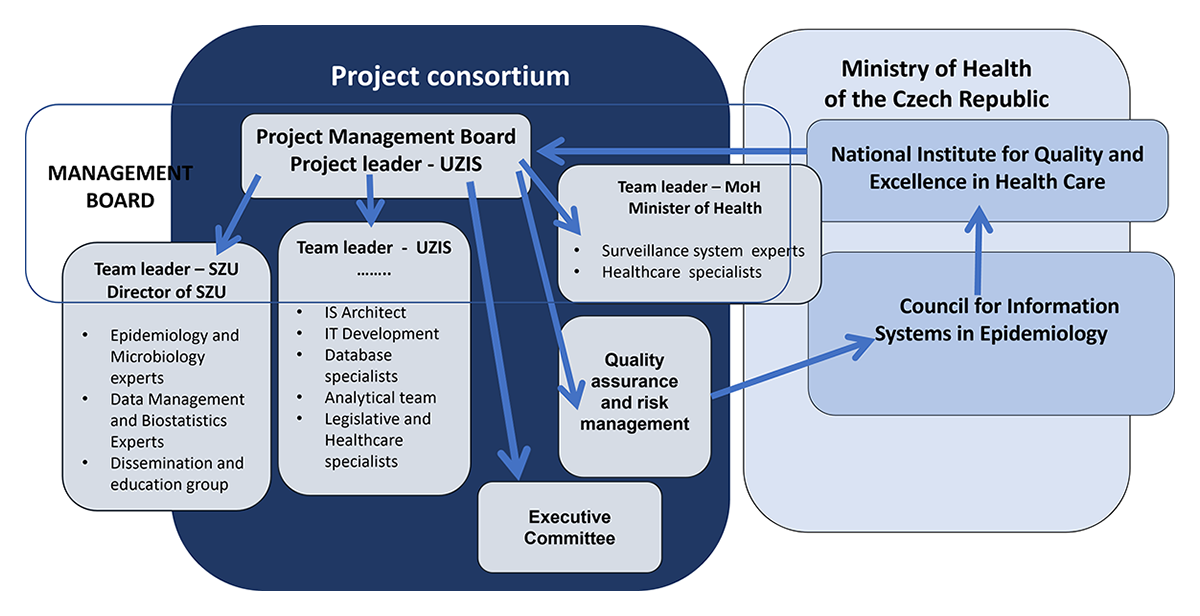 Project SCOPE IS has been proposed by team of three entities – the Institute of Health Information and Statistics (UZIS), the Ministry of Health of the Czech Republic (MoH) and the National Institute of Public Health (SZU) under the coordination of UZIS.